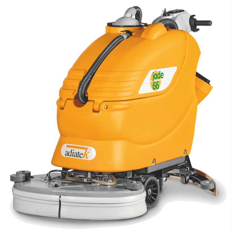 Stroj za čiščenje Adiatek Jade 66 je stroj delovne širine 66 cm, kapacitete 3000 m²/h, ki z dvema nasproti rotirajočima cilindričnima ščetkama s veliko hitrostjo vrtenja 400 obratov na minuto zagotavlja visok nivo čiščenja tal. Primeren je za industrijsko uporabo, saj je opremljen z aluminijasto glavo ščetke, ki je elastično vpeta na karoserijo stroja s čemer se vibracije ščetke ne prenašajo na čistilni stroj. Stroj za čiščenje Adiatek Ruby 66 je mogoče opremiti tudi z 3S dozirnim sistemom čistilne raztopine, ki omogoča natančno in stalno porabo.
