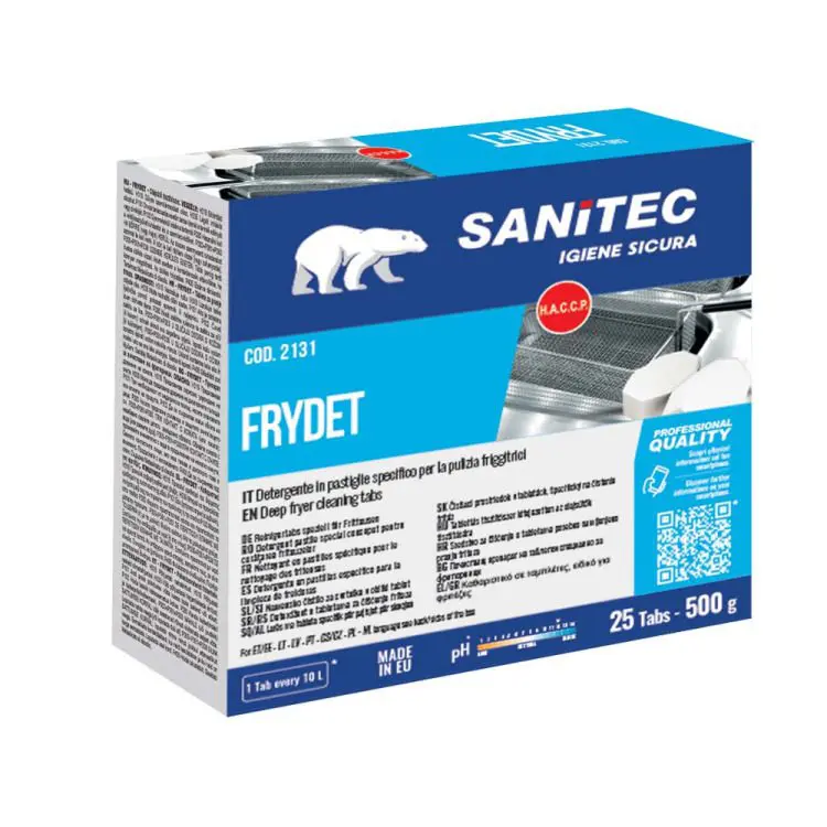 Čistilo za cvrtnike v tabletah – za čiščenje gospodinjskih in profesionalnih cvrtnikov, košar za cvrtnike in jeklenih površin. Inovativen proizvod, ki hitro odstrani olje, mast in zoglenele ostanke ter pusti površine čiste in sijoče, z uporabo vrele vode in ene same tablete.