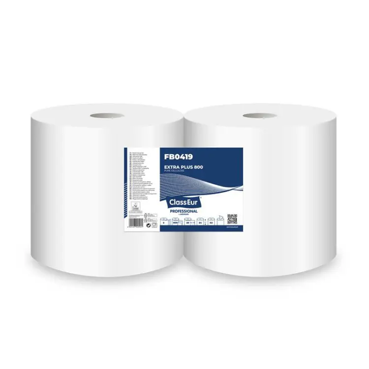 Industrijske papirnate brisače ClassEur Extra Plus 800, 2-slojne, primerne za prostore z veliko frekvenco ljudi. Posamezna industrijska rola vsebuje 800 papirnatih brisač. Industrijske papirnate brisače ClassEur odlikuje posebnost uporabe z zunanjim ali sredinskim izvlekom (Center Pull). Primerne za uporabo z vsemi podajalniki industrijskih brisač.