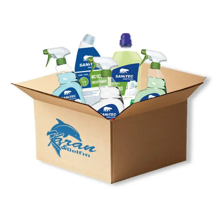 Komplet ekoloških čistil za čiščenje blagovne znamke profesionalnih čistil Sanitec. Omogoča učinkovito, varno, enostavno in okolju prijazno čiščenje.