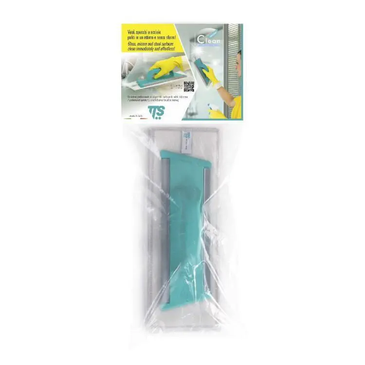 Komplet za brisanje stekla TTS Clean Glass Basic Kit je profesionalni komplet za brisanje oken in drugih steklenih površin, ki zagotavlja hitre, enostavne in učinkovite rezultate. Idealen je za čiščenje sijočih steklenih površin v notranjosti (izložbena stekla, ogledala, steklena vrata, okna) ter ravnih površin, kot je inox. Inovativni sistem združuje ročno držalo z ježki in mikrovlakensko krpo, s katero v enem samem potegu hkrati očistite in obrišete steklo do suhega – brez nadležnih sledi in lis. To pomeni, da prihranite kar tretjino časa, saj vam ni treba posebej brisati in nato sušiti površine.