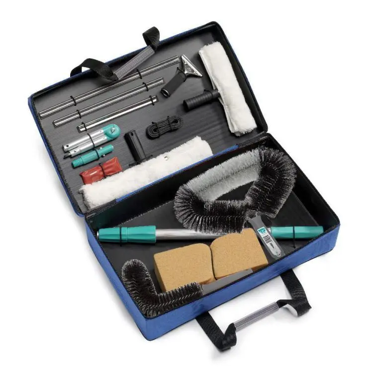 Kovček z vsem kar potrebujete za profesionalno čiščenje oken in odstranjevanje pajčevin.