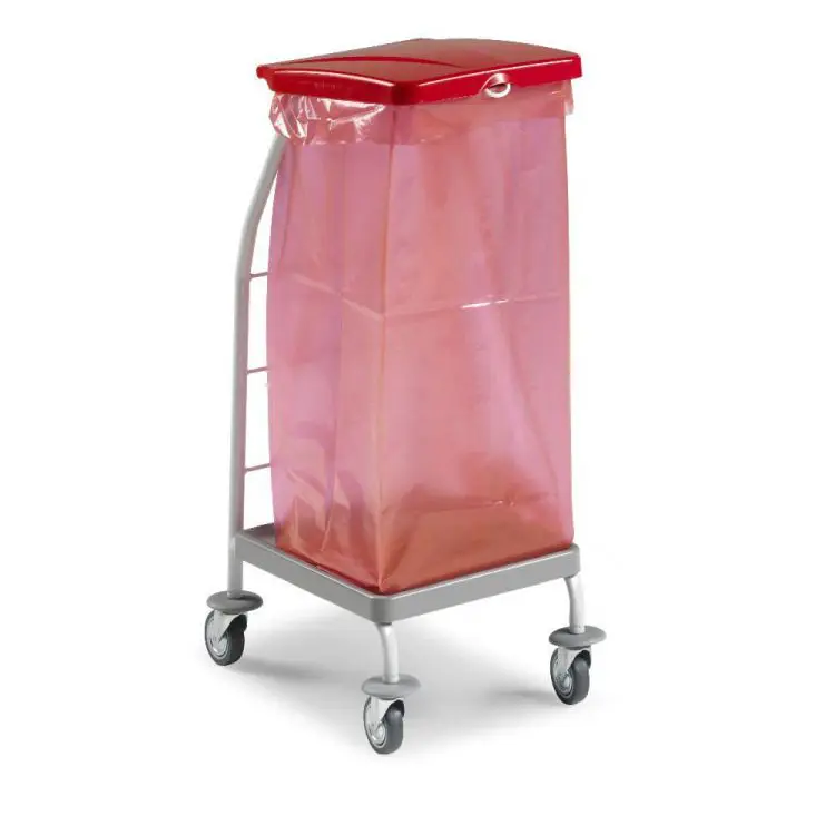 Rilsan lakiran kovinski voziček za zbiranje odpadkov, s kolesi ø 80 mm in pokrovi. Opremljen s trakom za zategovanje vrečke