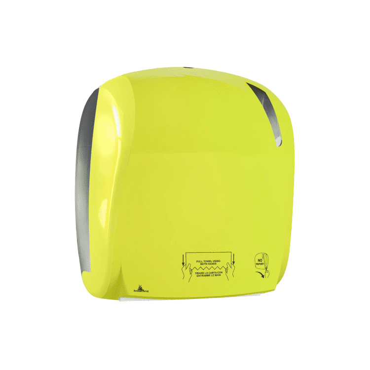 Podajalnik papirnatih brisač v roli z avtomatskim odrezom “Autocut”. Z natisnjenimi indikacijami za uporabo, zagotavlja maksimalno higieno, zaradi česar je ta podajalnik primeren za standarde H.A.C.C.P. Zaradi antibakterijske plastike posebno primeren za veterinarske ambulante, zdravstvo itd.