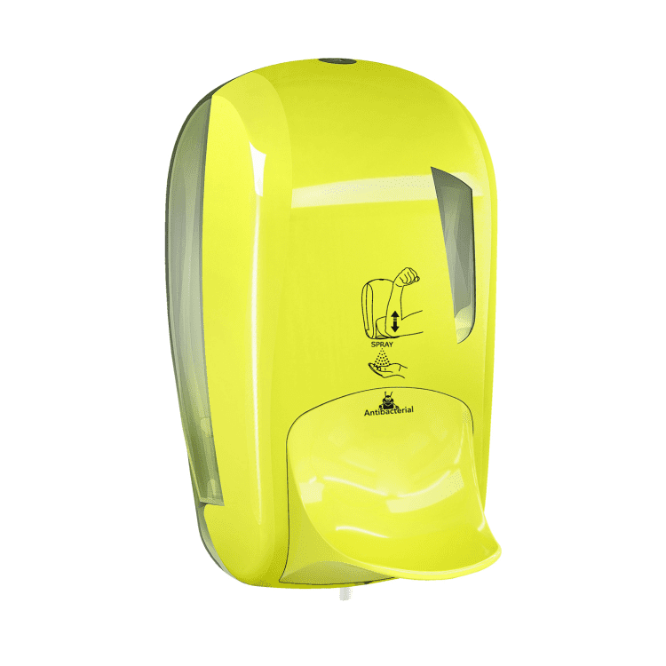 Elegantni komolčni podajalnik dezinfekcije (tekoče ali v gelu). Zaradi antibakterijske plastike primeren za uporabo v veterinarskih ambulantah, zdravstvu itd.