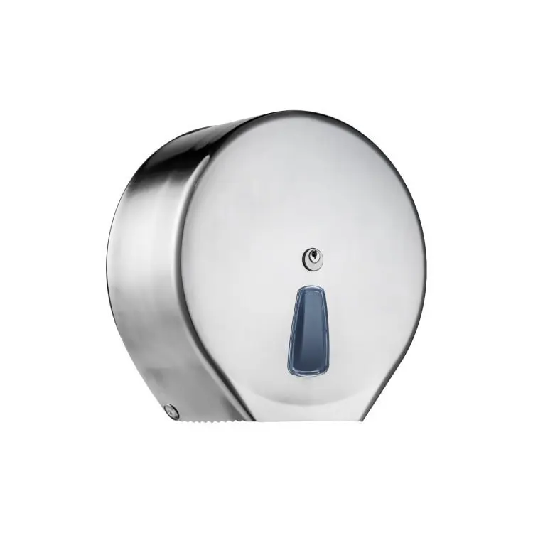Elegantni kovinski podajalnik WC rol mini jumbo. Narejen iz nerjavečega jekla. Podajalniki iz inoxa so izredno robustni, prostoru pa dajejo vtis o visoki kakovosti. Primeren za namestitev v klubih, barih, diskotekah itd.