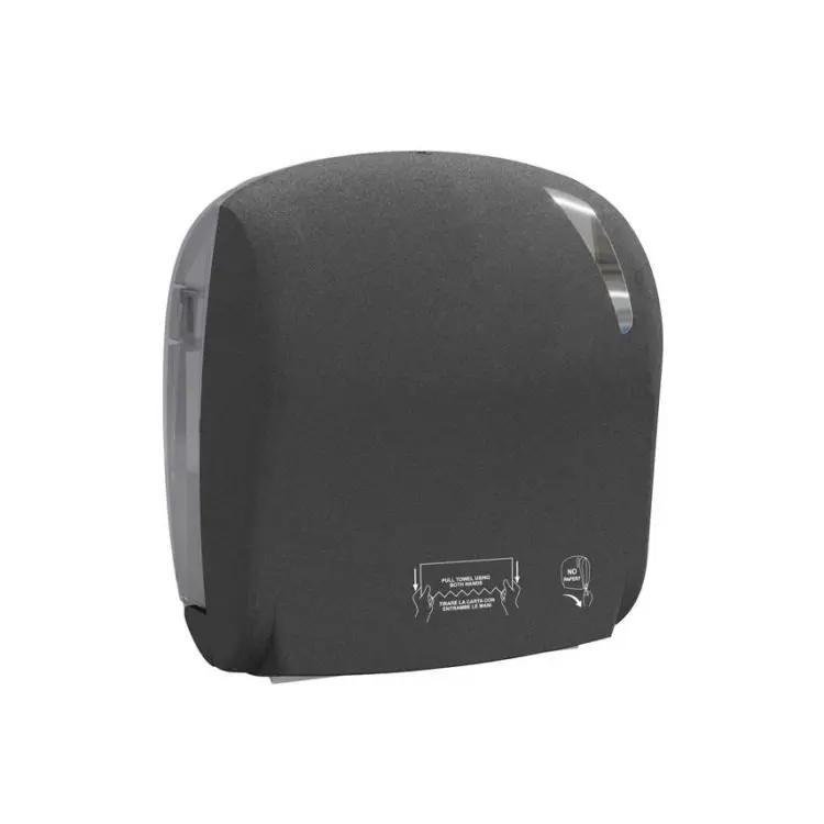 Podajalnik papirnatih brisač v roli z avtomatskim odrezom “Autocut”. Z natisnjenimi indikacijami za uporabo, zagotavlja maksimalno higieno, zaradi česar je ta podajalnik primeren za standarde H.A.C.C.P. Izgled kamna – značilna zrnata tekstura in antracitna barva. Podajalniki linije Stone so barvani z okolju manj škodljivimi vodnimi barvami in narejeni iz certficirane reciklirane plastike.