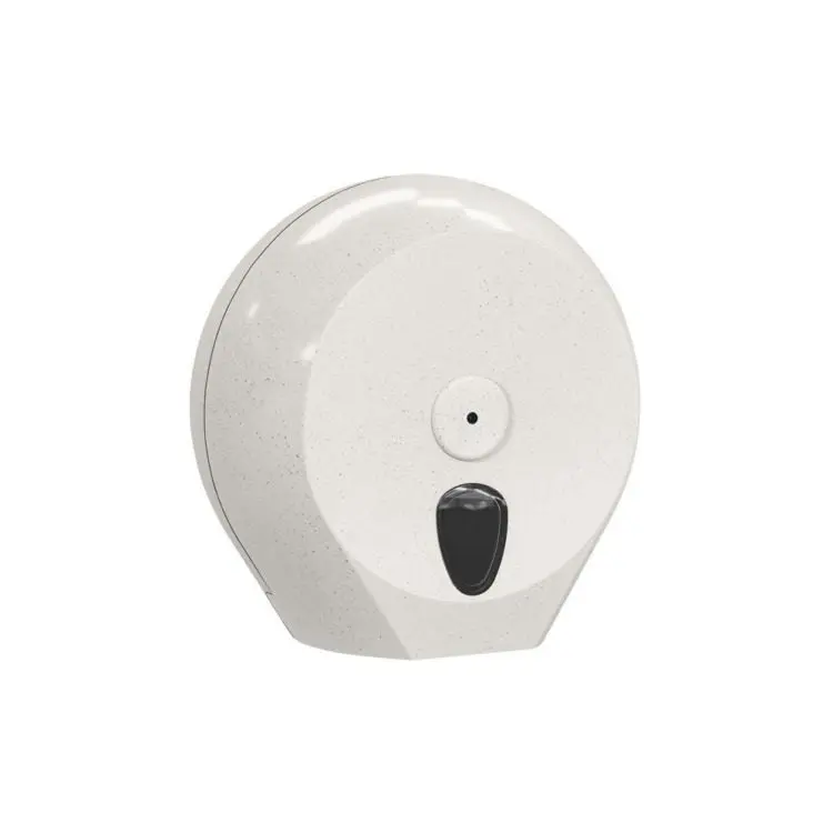 Podajalnik toaletnega papirja v roli mini jumbo, idealen za majhne prostore. Z oknom za spremljanje porabe. S preprostim in čistim dizajnom se prilagaja vsakemu okolju. Woodplastic je inovativna zbirka ekoloških podajalnikov, izdelana iz hibridnega materiala med plastičnimi peleti in ostanki predelave lesa. V celoti izdelan v Italiji iz visokokakovostnih materialov.