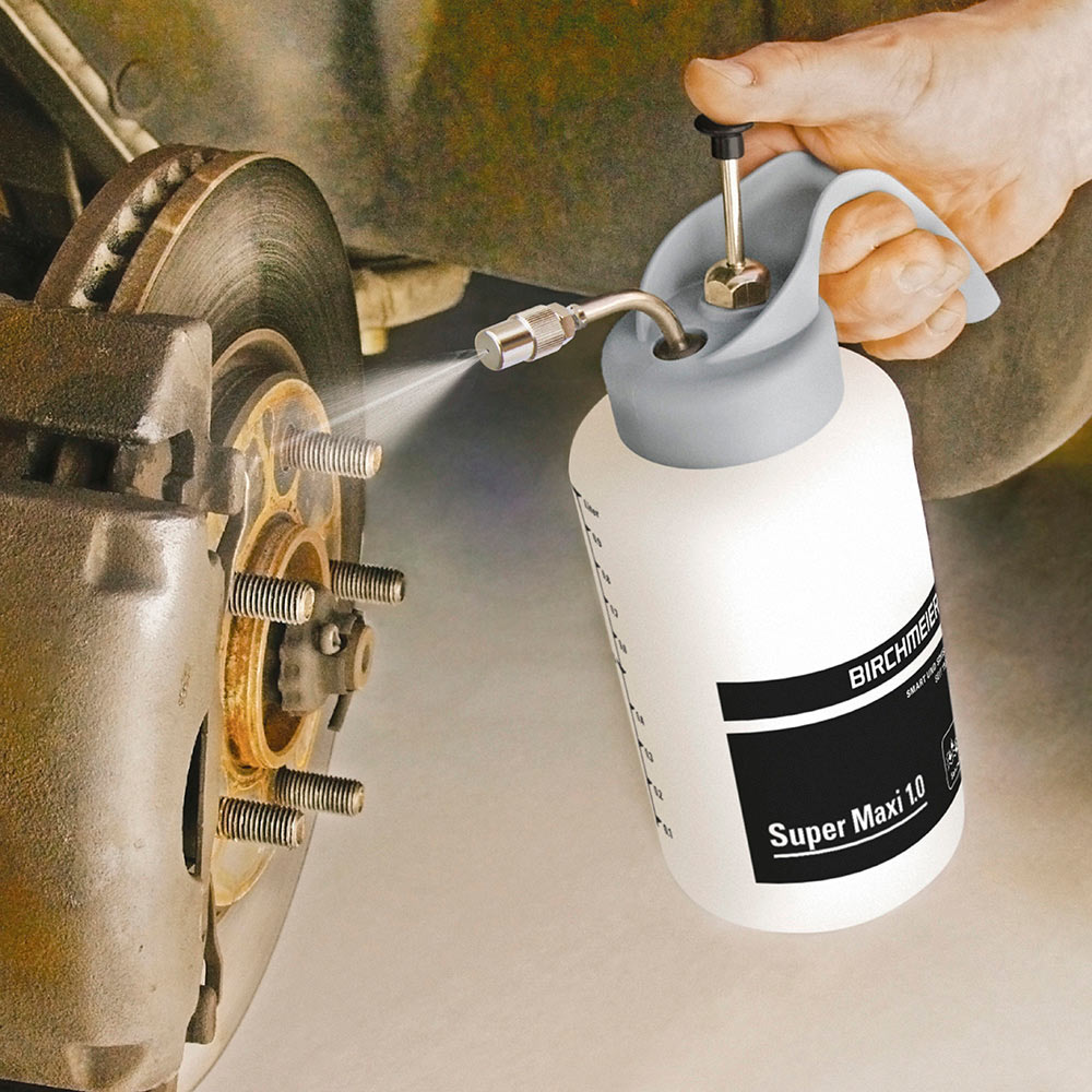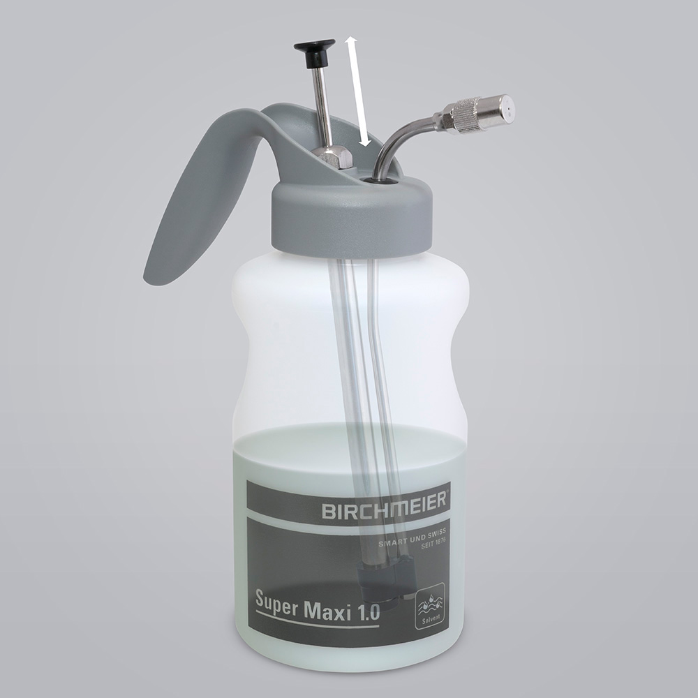 Ročni razpršilec Birchmeier Super Maxi 1.0 je profesionalni švicarski razpršilec, zasnovan za razprševanje raztopin na osnovi mineralnih olj, agresivnih topil (vključno z zavirači rje in čistili zavor), ločilnih sredstev, emulzij in visoko viskoznih izdelkov. S posebnimi tesnili BMS 2010, ki zagotavljajo izjemno kemično odpornost – večjo kot pri standardnih Viton ali EPDM tesnilih – in zmogljivo medeninasto batno črpalko z delovnim tlakom do 12 barov je ta razpršilec prva izbira profesionalcev v avtomobilski industriji, čistilnih servisih, vzdrževalnih službah in industrijskem sektorju.